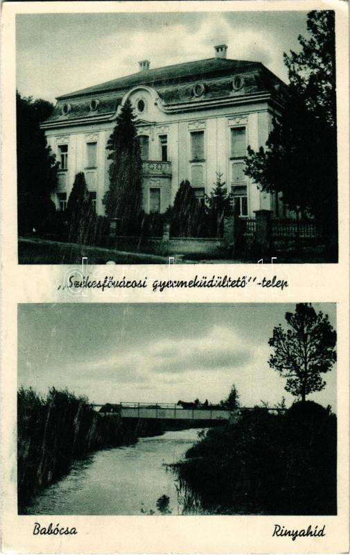 https://www.darabanth.com/en/443-Online-auction/443.0/Postcards/Hungary~2000005/1937-Babocsa-Szekesfovarosi-gyermekudulotelep-Rinya-hid-Hangya-szovetkezet-kiadasa-fel~II2919556