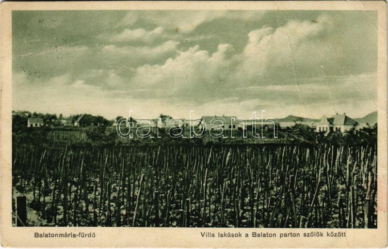 1939 Balatonmáriafürdő, Villa lakások a Balatonparton szőlők között. Gyenes Lajos kiadása (fa)