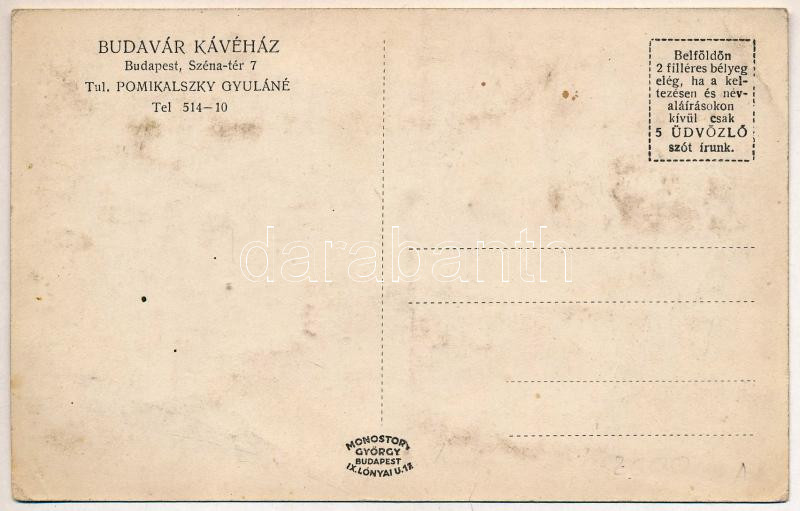 https://www.darabanth.com/en/443-Online-auction/443.0/Postcards/Hungary~2000005/Budapest-I-Vizivaros-Budavar-kavehaz-belso-Pomikalszky-Gyulane-tulajdonos-Szena-ter-7~II2920786