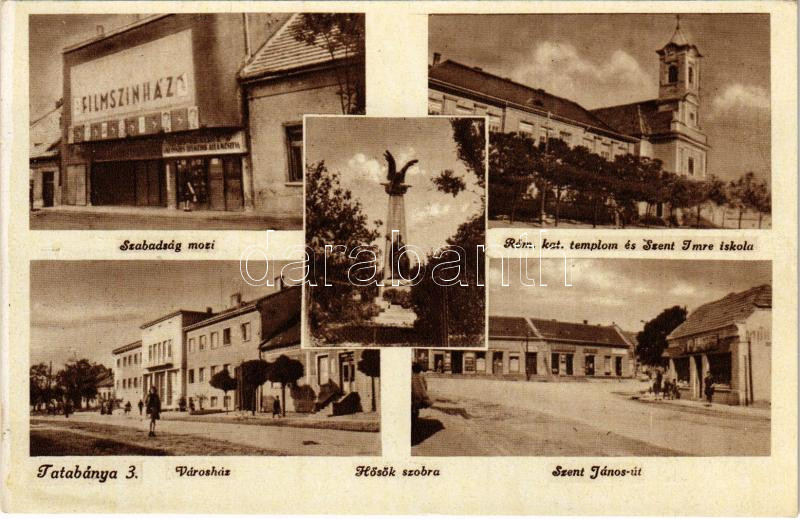 Tatabánya, Szabadság mozi, filmszínház, Római katolikus templom és Szent Imre iskola, Városháza, Hősök szobra, emlékmű, Szent János út
