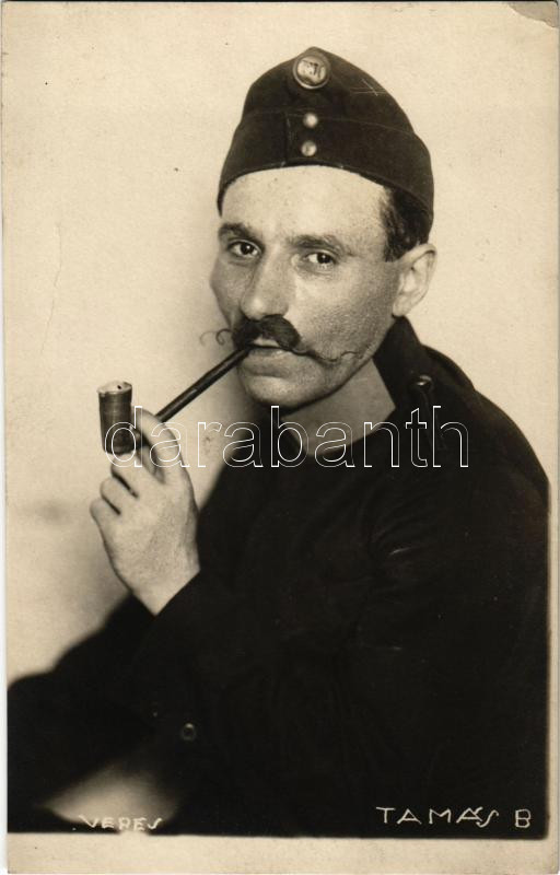 https://www.darabanth.com/en/443-Online-auction/443.0/Postcards/Militaria~2000032/Pipazo-magyar-katona-Veres-Tamas-B-Hungarian-military-soldiers-smoking-a-pipe-photo-EK~II2919596