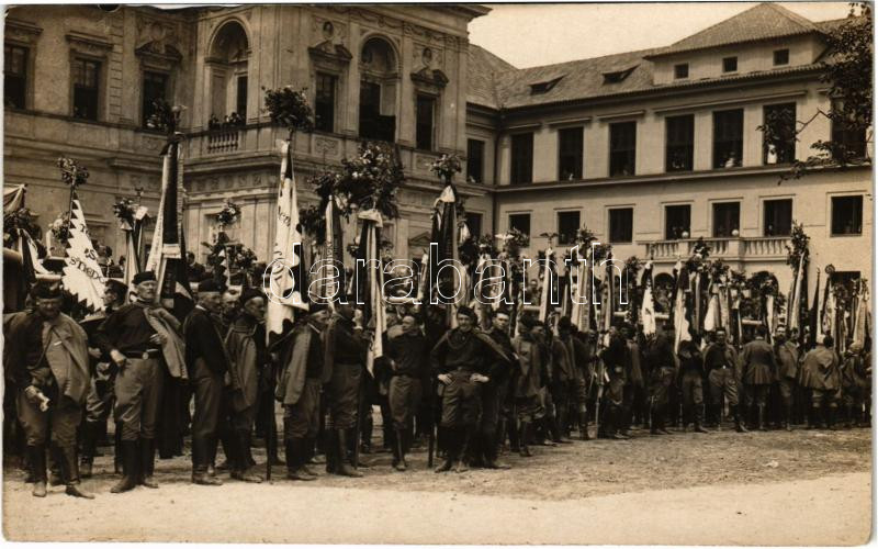 1925 Sokol cseh nacionalista torna mozgalom felvonulása zászlókkal / Czech Sokol gymnastics organization, parade of the movement with flags. photo