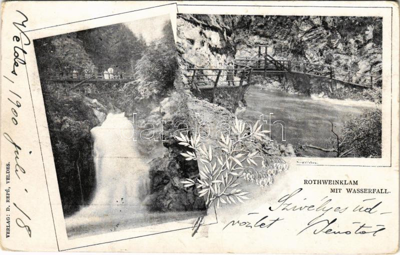 1900 Bled, Veldes; Rothweinklamm mit Wasserfall. Art Nouveau, floral (worn corners)