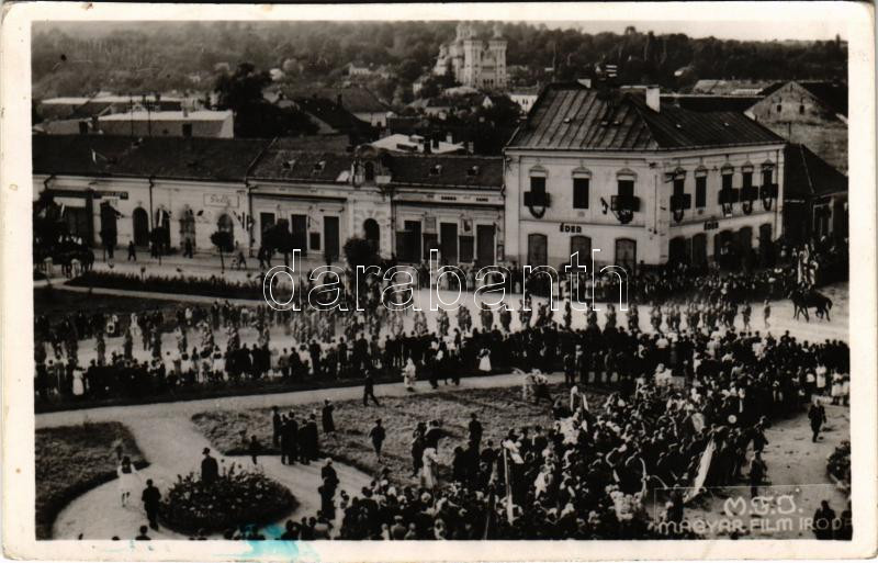 1940 Zilah, Zalau; bevonulás, magyar zászlók, Édes és Seres Samu üzlet...