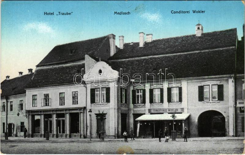 https://www.darabanth.com/en/443-Online-auction/443.0/Postcards/Transylvania~2000006/Medgyes-Mediasch-Medias-Hotel-Traube-Conditorei-Wokler-Traube-szalloda-Wokler-cukraszda-Ki~II2914876