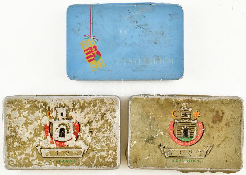 össz. 3 db régi szivarkás fém doboz: Pest szivarka (2 db), 1848-1948 c...