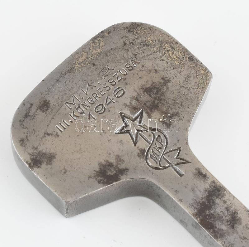 1946 MKP III. kongresszusa vésett asztali dísz, m: 10,5 cm