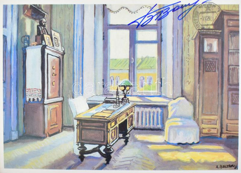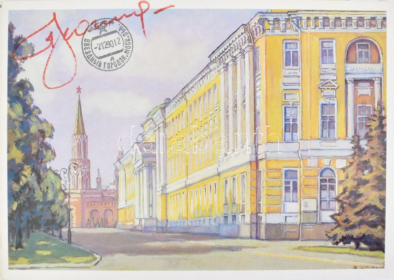 Összesen 33 db szovjet űrhajósoktól származó aláírás, albumban (A. P. Ceszevics: Lenin helyei a Kremlben. Moszkva, 1988), köztük Georgij Tyimofejevics Beregovoj (1921-1995), Valentyina Vlagyimirovna Tyereskova (1937- ), German Tyitov (1935-2000), Valerij Nyikolajevics Kubaszov (1935-2014), Gennagyij Vasziljevics Szarafanov (1942-2005), Konsztantyin Petrovics Feoktyisztov (1926-2009), Borisz Valentyinovics Volinov (1934- ), Pavel Romanovics Popovics (1930-2009), Oleg Grigorjevics Makarov (1933-2003) és mások. // A total of 33 signatures by Soviet astronauts, in an album (A. P. Tsesevich: Lenin's Places in the Kremlin. Moscow, 1988), including Georgy Beregovoy, Valentina Tereshkova, German Titov, Valery Kubasov, Gennady Sarafanov, Konstantin Feoktistov, Boris Volynov, Pavel Popovich, Oleg Makarov and others.
