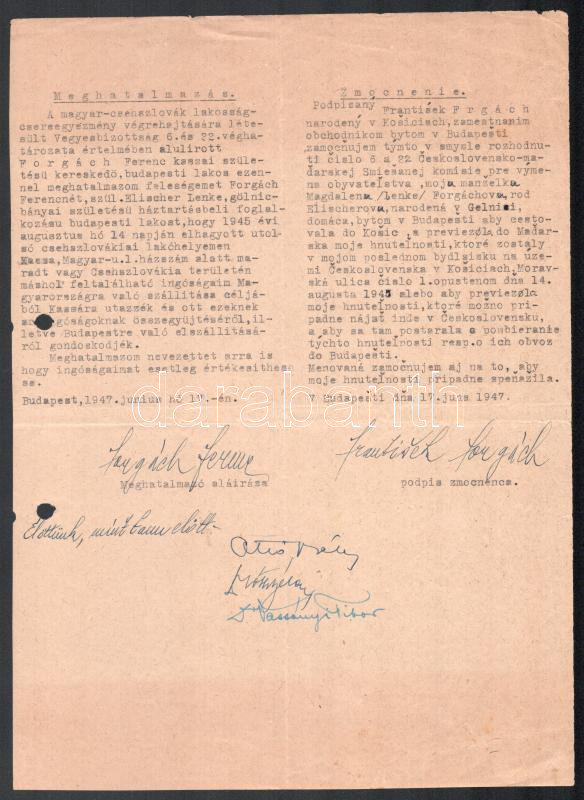 https://www.darabanth.com/en/444-Online-auction/444.0/Art-and-other-collectibles/Documents~500022/1947-Magyar-csehszlovak-lakossagcsere-kapcsan-kiadott-ketnyelvu-meghatalmazas~II2932928