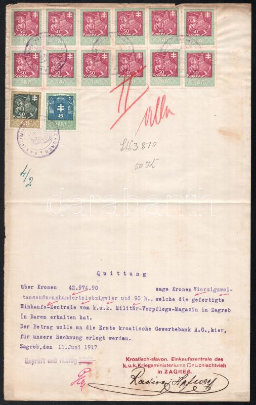 Zágráb 1917 Katonai vonatkozású okmány 648K okmánybélyeggel