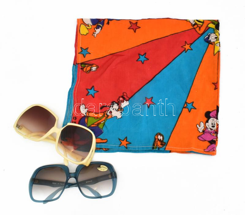 2 db retro napszemüveg, olasz design, 15x7 cm, Walt Disney kendő