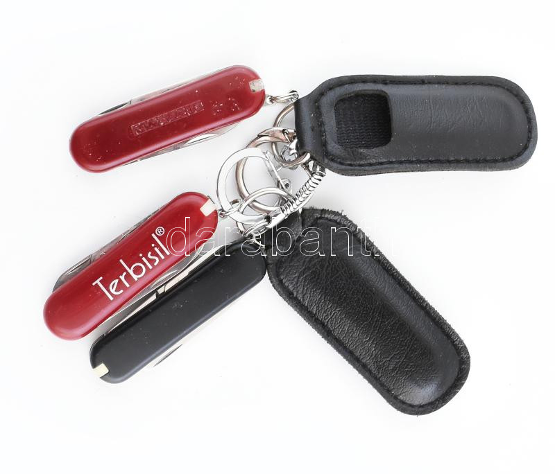3 darab kisméretű bicska, bőr tokokkal, h: 6 cm