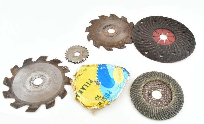 3 db vágó korong fa, fém, kő