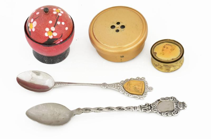 5 darabos bolha tétel: japán festett figura, zeneszerkezet, díszkanál, stb.