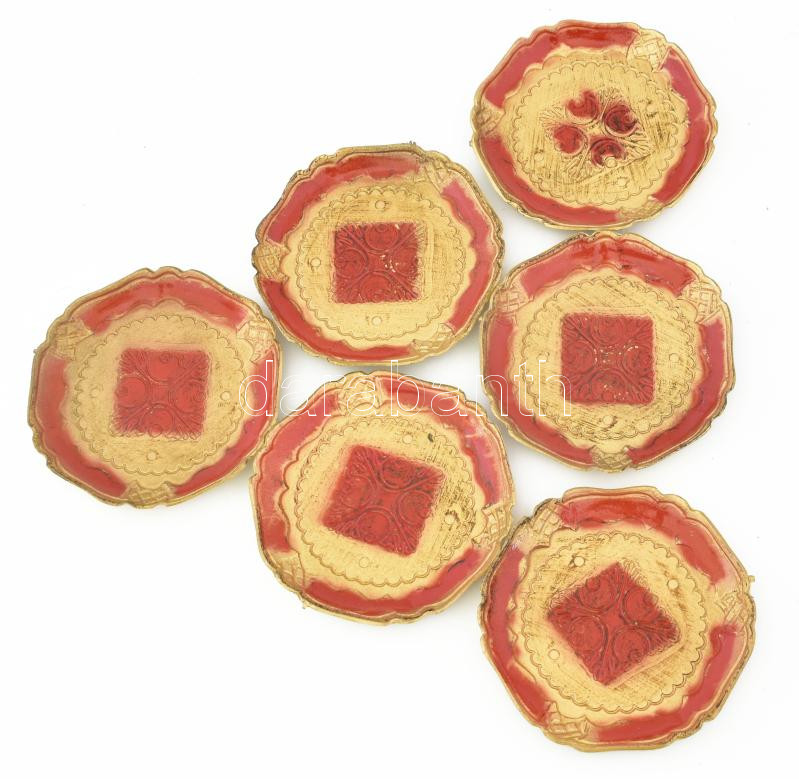 6 darab olasz bonbon tálka dobozában, újszerű, d: 10 cm