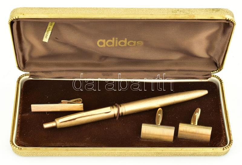 Adidas aranyozott toll, nyakkendőcsipesz és mandzsetta szett, eredeti dobozában