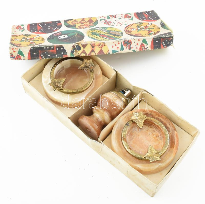 Alabástrom és réz asztali készlet, eredeti hibátlan, d: 12 cm