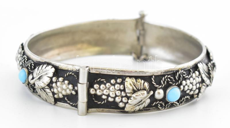 Díszes fém karperec, türkiz berakásokkal (egy hiányzik), d: 6 cm