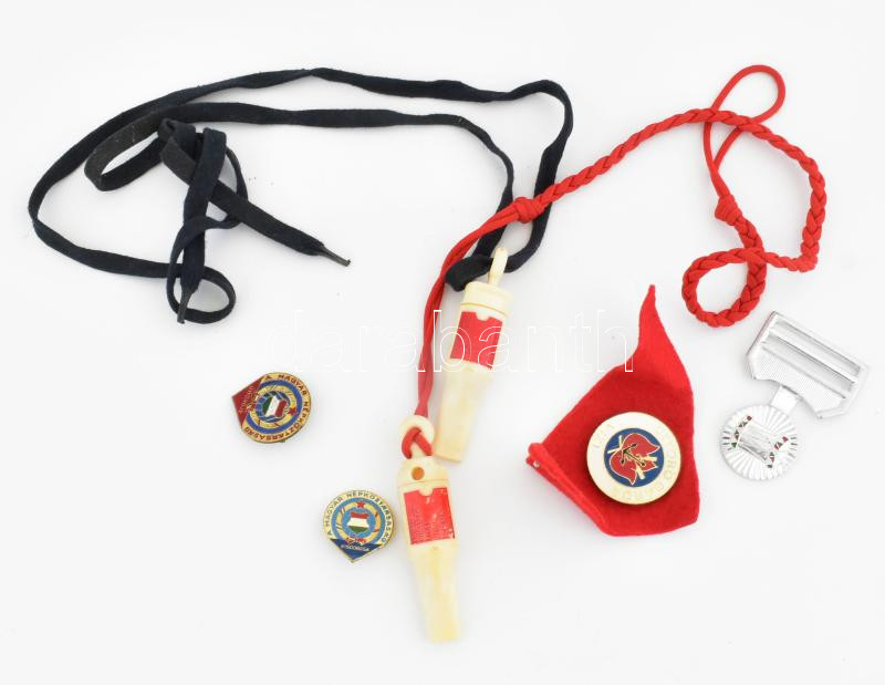 Uttörő jelvények, sípok, madzagok, jó állapotban