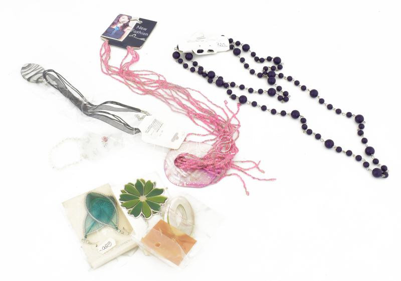 Vegyes bizsu fülbevaló, karkötő és nyaklánc tétel, egyik sérült