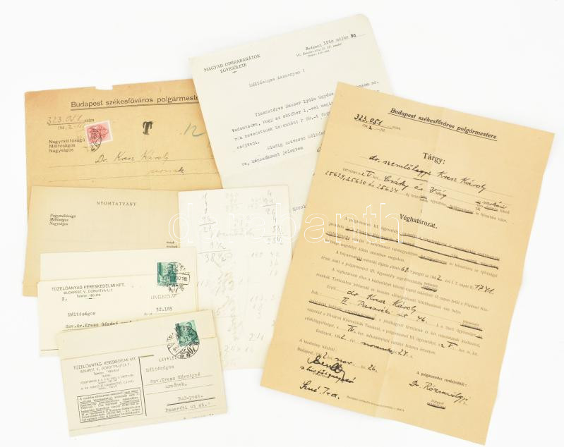1932-1943 dr. Kresz Károly / Károlyné és dr. Kresz Gézáné névre szóló vegyes levelek, iratok, össz. 7 db