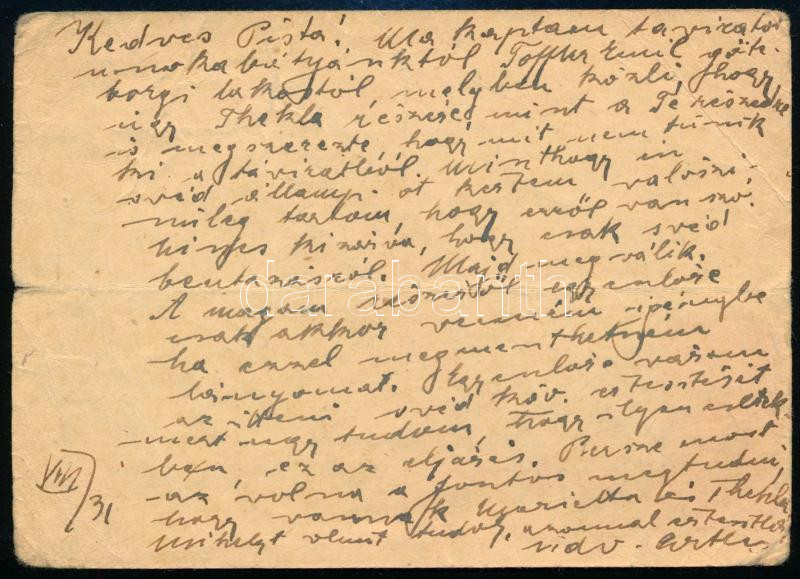 1944. aug. 31 Levelezőlap munkaszolgálatosnak Budapestre, cenzúrázva, ...
