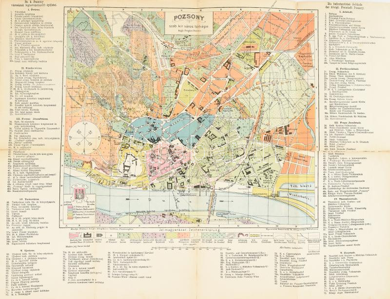 Pozsony szab. kir. város térképe, rajzolta: Peigler Ferenc, jelmagyará...