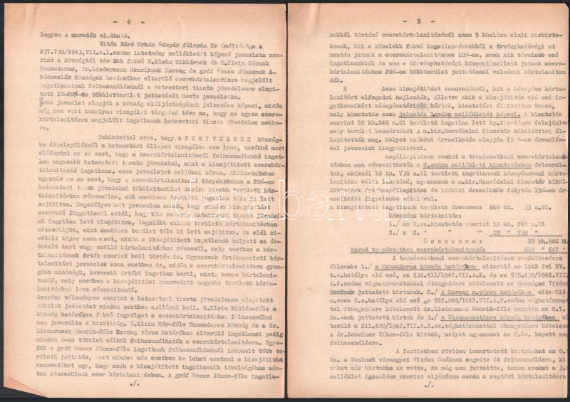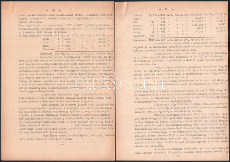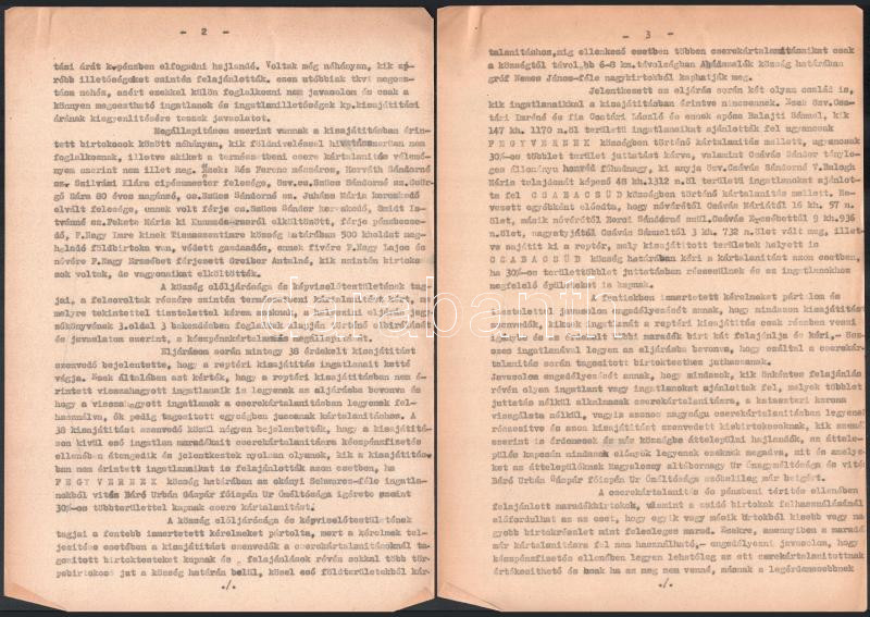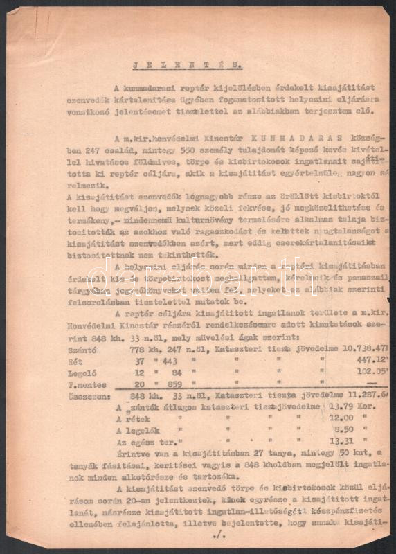 1943-ban írt jelentés a Kunmaradasi repülőtér létesítéséről, benne leírás az eltulajdonított területekről, azok tulajdonosainak kártérítéséről.
