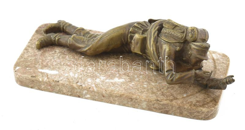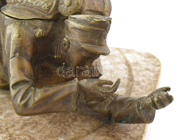 I. világháborús katona bronz szobra, nyitható tintatartó márvány alapo...