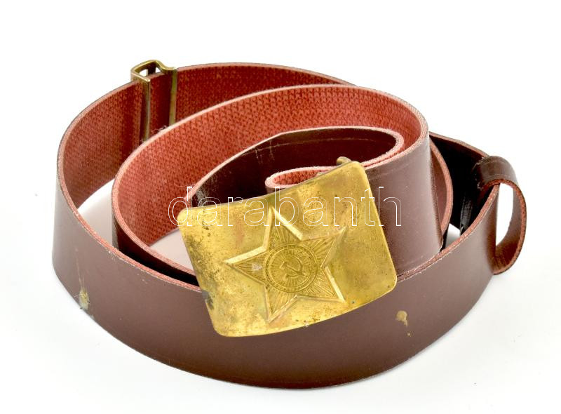 Szovjet öv, sarló kalapácsos réz csat, 5,5x7,5cm, bőr övvel