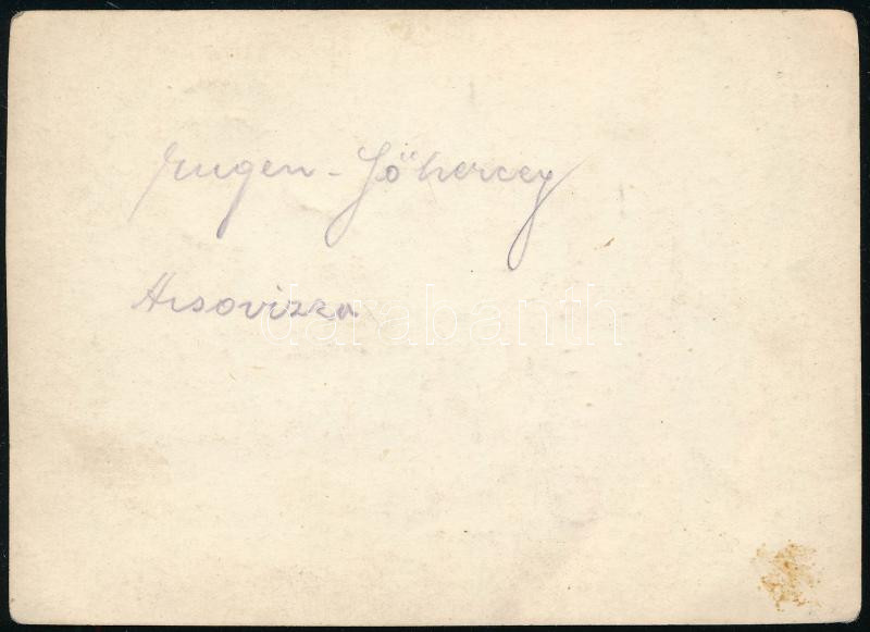 Description: cca 1915 Habsburg-Tescheni Jenő főherceg, a monarchia délnyugati frontjának főparancsnoka Szlavóniában a fronton, hátoldalon feliratozott fotó, 8×11 cm