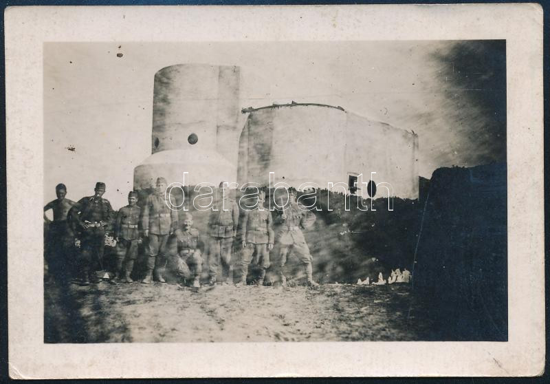 cca 1940-1945 Katonák cseh erőd előtt, fotó, 6,5×10 cm