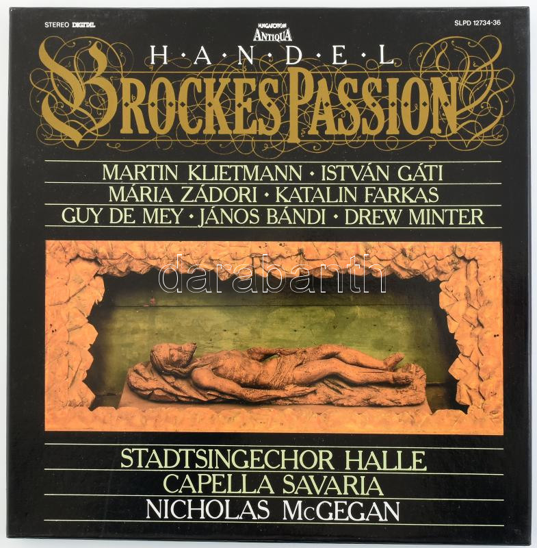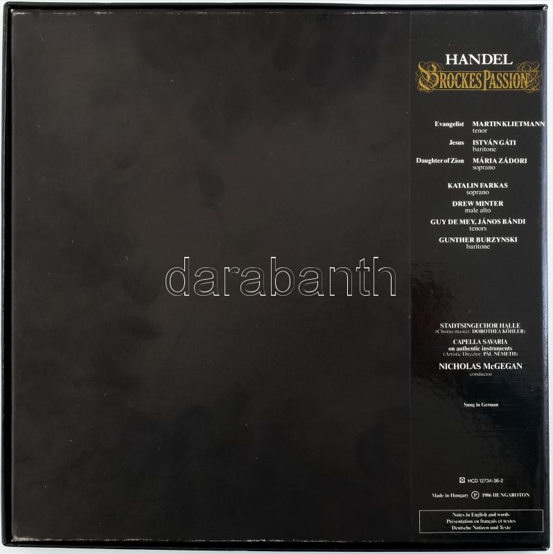 Handel, Martin Klietmann, István Gáti, Mária Zádori, Katalin Farkaš, Guy De Mey, János Bándi, Drew Minter, Stadtsingechor Halle, Capella Savaria, Nicholas McGegan - Brockes Passion. 3 x Vinyl, LP, Album, Stereo, Box Set. Hungaroton. Magyarország, 1986. jó állapotban