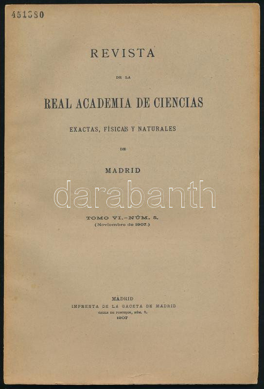 1907. Real Academia de Ciencias, spanyol folyóirat.