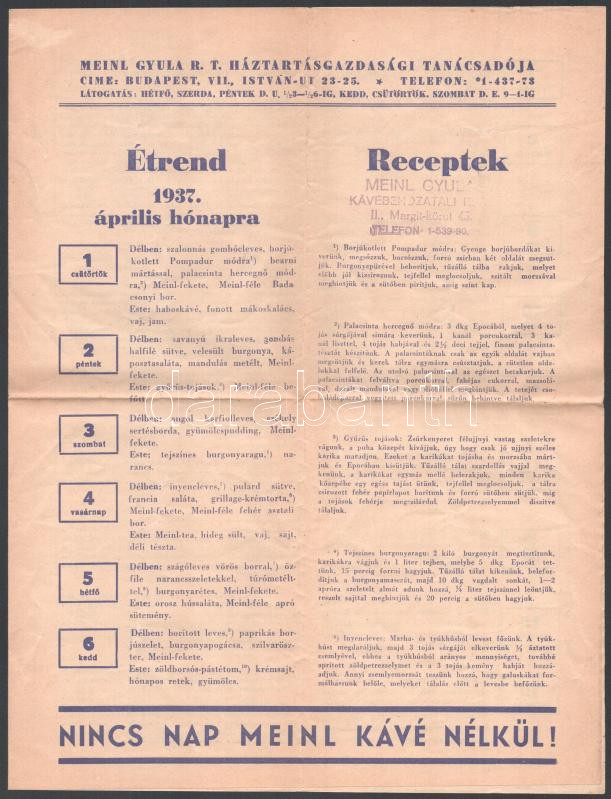 https://www.darabanth.com/en/444-Online-auction/444.0/Art-and-other-collectibles/Printed-Materials~1500007/1937-Meinl-Gyula-Rt-Haztartasgazdasagi-Tanacsadoja-etrend-1937-aprilis-honapra-receptek-~II2932498