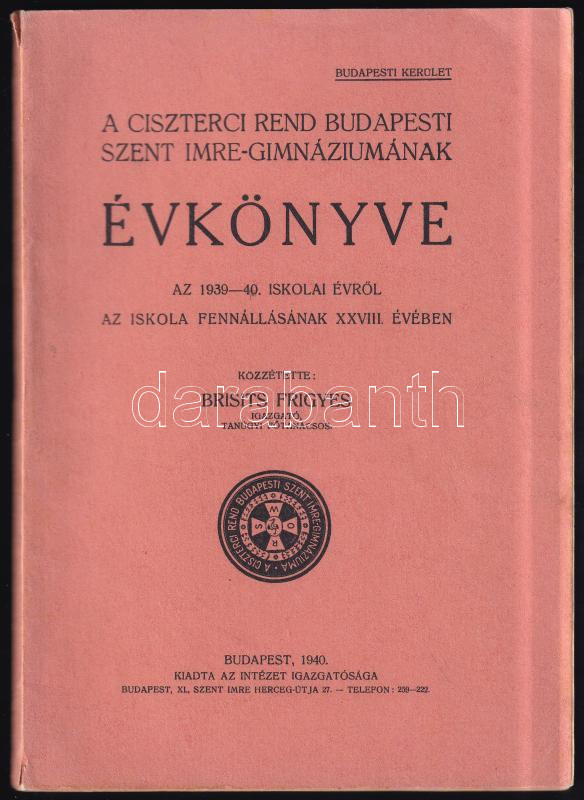1940 A Ciszterci Rend Budapesti Szent Imre Gimnáziumának évkönyve az 1... https://www.darabanth.com/en/444-Online-auction/444.0/Art-and-other-collectibles/Printed-Materials~1500007/1940-A-Ciszterci-Rend-Budapesti-Szent-Imre-Gimnaziumanak-evkonyve-az-1939-40-iskolai-evrol-K~II2927279