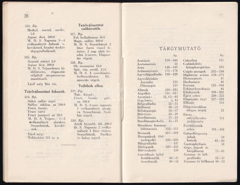 1942 Állatorvosi receptgyűjtemény, ritka, 39p