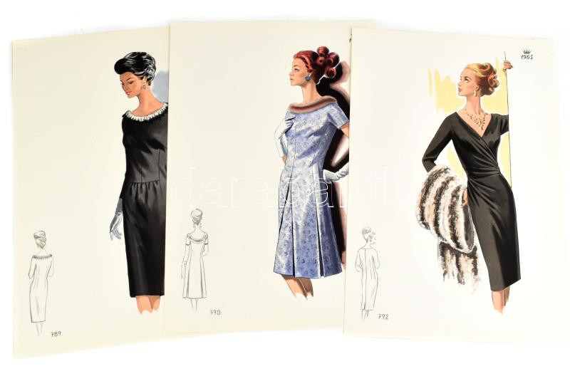 1965 3 db vintage női divatkép, ofszet nyomat, papír, 34x24 cm
