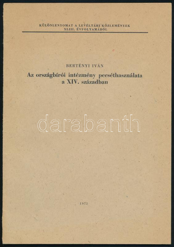https://www.darabanth.com/en/444-Online-auction/444.0/Art-and-other-collectibles/Printed-Materials~1500007/1972-Bertenyi-Ivan-Az-orszagbiroi-intezmeny-pecsethasznalata-a-XIV-szazadban-Kulonle~II2878251