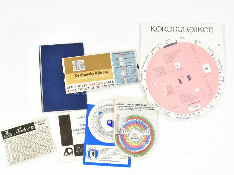 7 db vegyes, műszaki és egyéb témájú táblázat, nyomtatvány: ötvözött a...