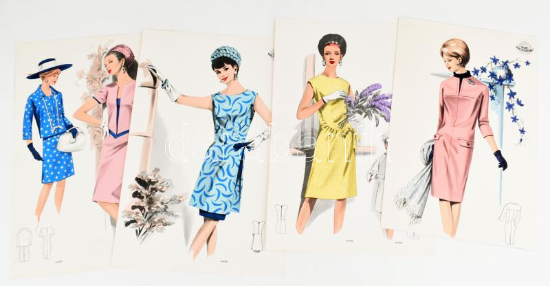 cca 1950 4 db Wemo Modes Internationales vintage divatkép, ofszet nyom...