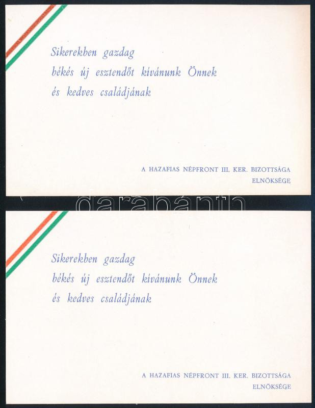 cca 1967 2 db a Hazafias Népfront III. ker. Bizottsága által küldött ü...