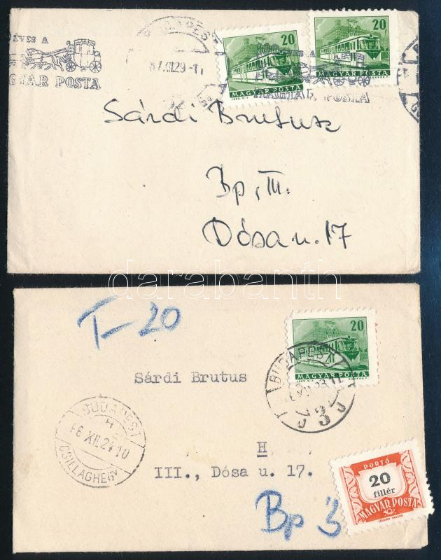 cca 1967 2 db a Hazafias Népfront III. ker. Bizottsága által küldött üdvözlő kártya Sárdy Brutus (1892-1970) restaurátor részére, eredeti borítékban