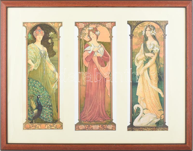 cca 2000-2020 Szecessziós női alakok, modern nyomat, papír. Élisabeth ...