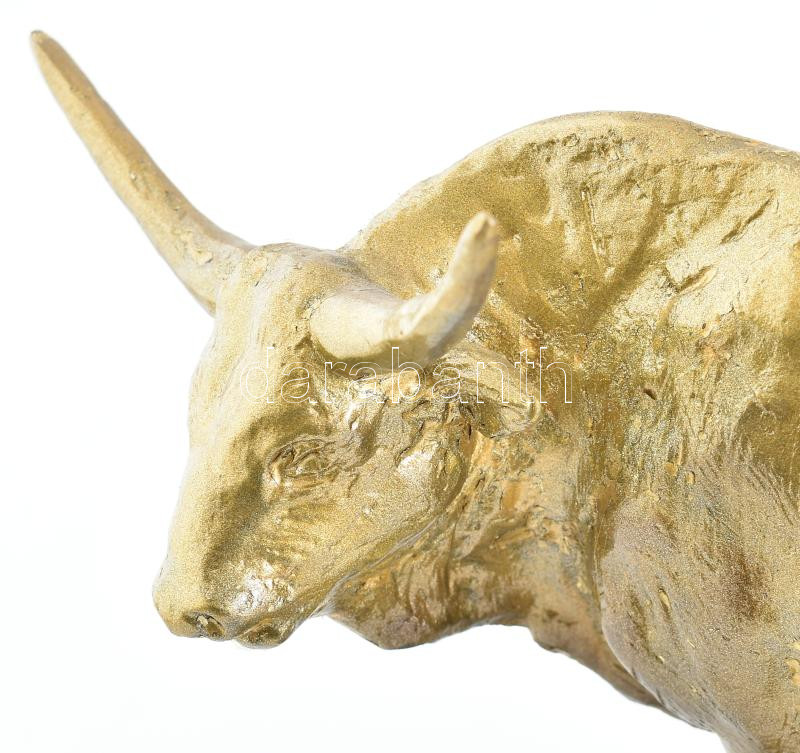 Jelzés nélkül: Magyar szürke szarvasmarha. Aranyra festett bronz, festett márvány talapzaton. m: 36 cm