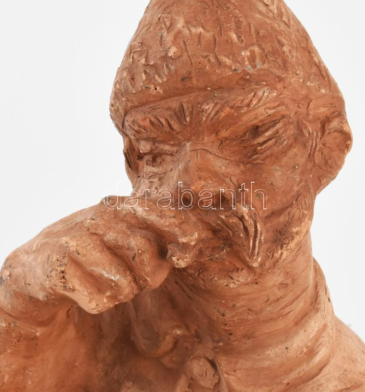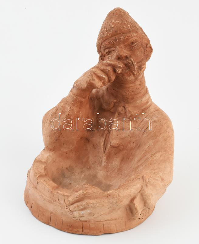 Szederjesi András erdélyi keramikus: Figurális szivartál, kézzel formált égetett agyag, feje ragasztott, kis lepattanások, jelzett, m: 21 cm