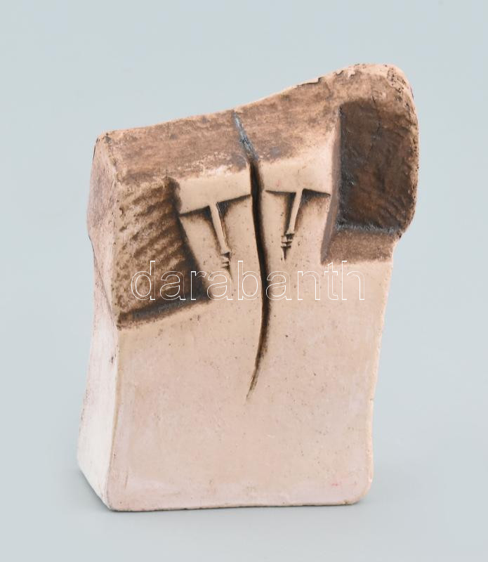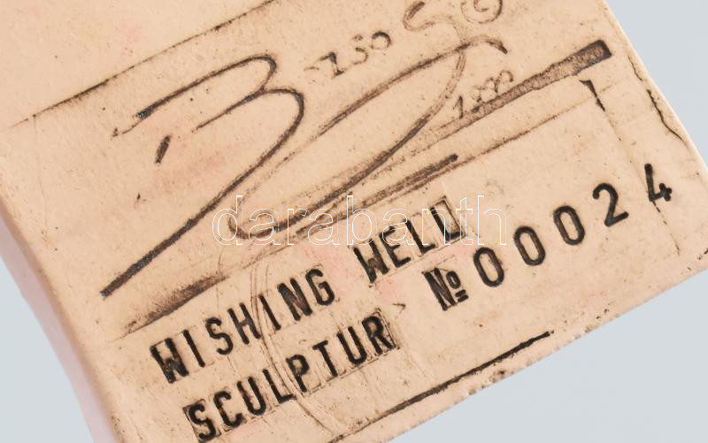 Szignózott jókívánság szobor (Wishing Well Sculptur), jelzéssel, keménycserép(?), hibátlan, m: 9,5 cm