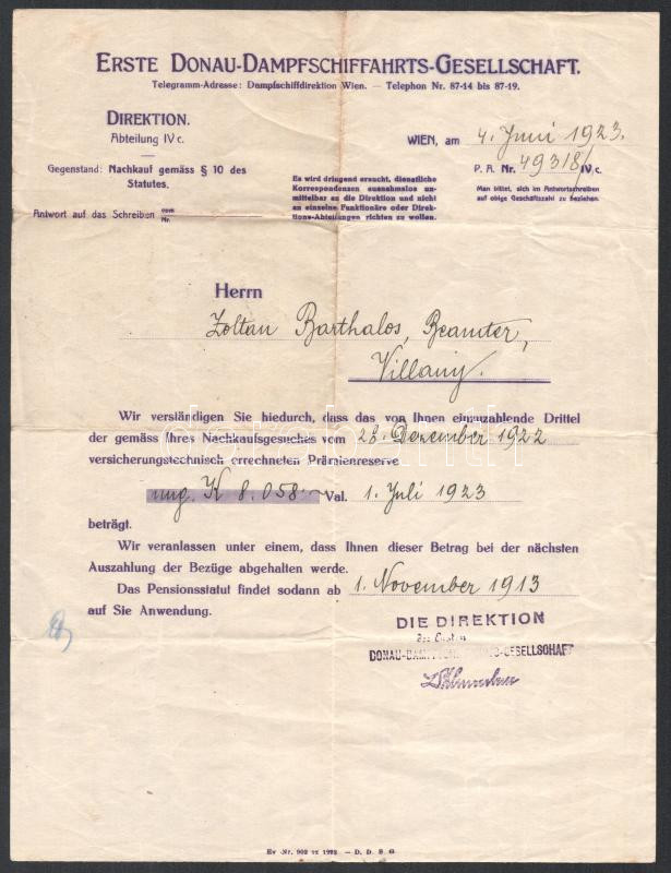cca 1910-1920 DDSG (Első Dunagőzhajózási Tárasaság) és Duna hajózási vállalat két fejléces levele