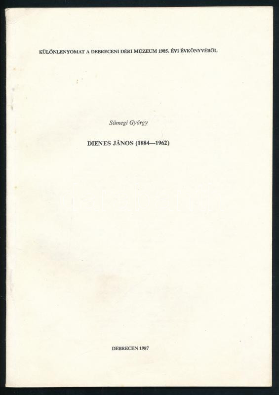 Sümegi György: Dienes János (1884-1962.) Különlenyomat a Debreceni Déri Múzeum 1985. évi évkönyvébÅ‘l. Debrecen, 1987., Déri Múzeum, 335-371 p. Kiadói papÃrkötés.;
