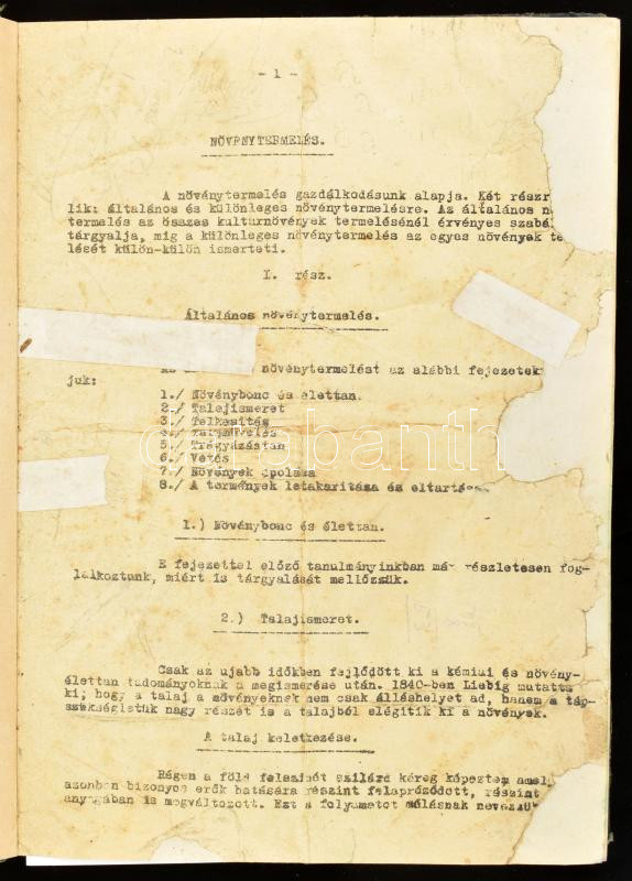 Növénytermelés. Tankönyv Géppel írt, korabeli sokszorosított jegyzet. Magyar Óvár? cca 1930 293 p.Első lapok ragasztottak, kissé ázott borítóval